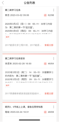 2月24日,在线教学正式开始了。按照提前设计好的教学过程,发起点名、学生签到后,引导学生在优学院app上观看由课程组教师提前精心录制的授课视频,并发布相关知识点的课堂讨论,让学生在手机端通过回贴的方式参加讨论。还采用选人回答问题、抢答等互动方式,将学生吸引在云端课堂上。