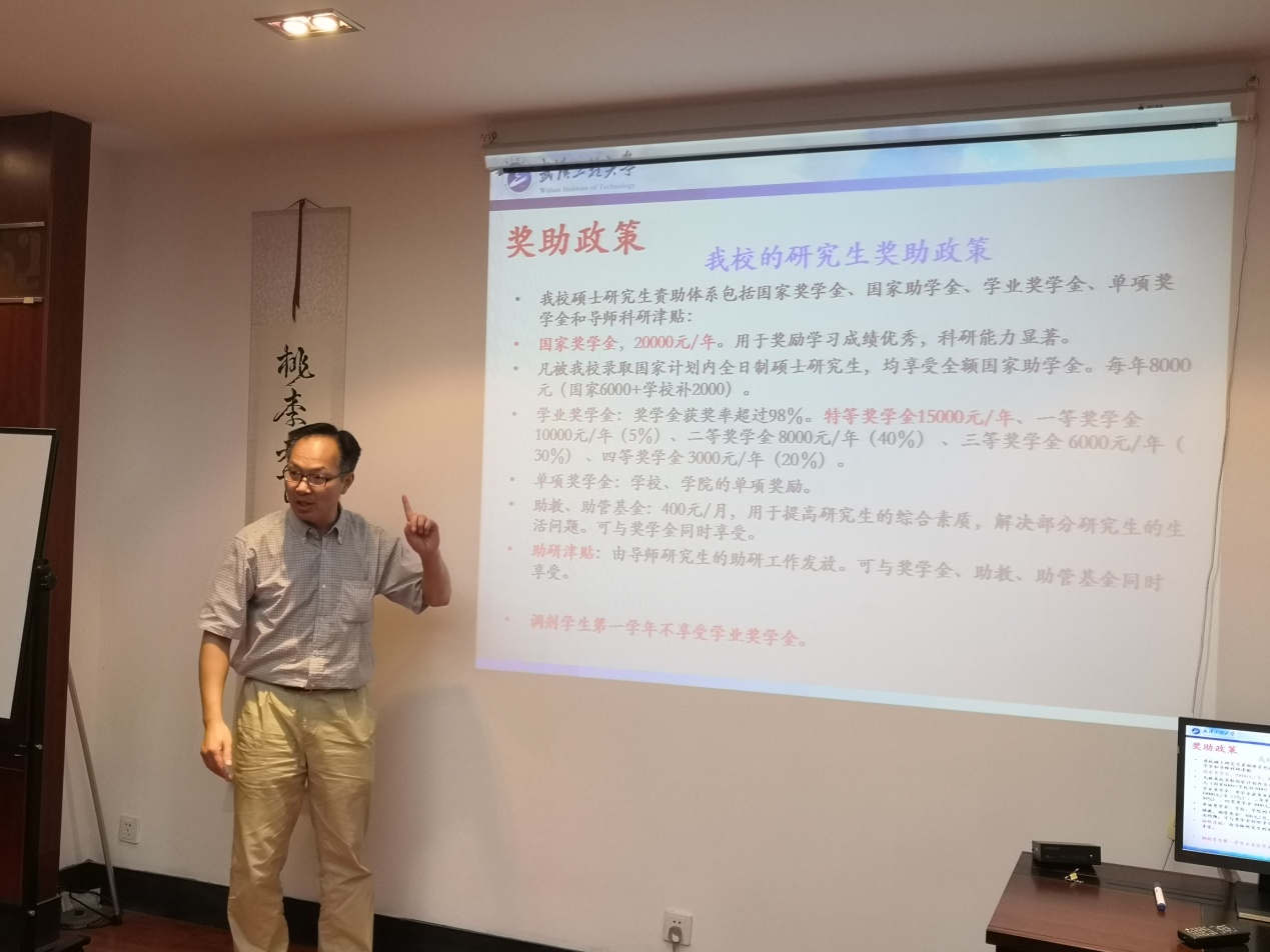9月17日下午,伟德国际1949始于英国,伟德国际1949官方网站2019年度研究生招生宣讲会在湖北理工学院化学与化工学院会议室举行。本次宣讲团队由我校伟德国际1949始于英国龙思会副院长、田琦峰副院长以及曹爽博士组成,团队一行受到了湖北理工学院卢小菊院长的热情欢迎。30余名湖北理工学院的意向考生报名参加。宣讲会分为嘉宾演讲、招生政策解读和互动交流三个部分组成。会上就我校基本校情、研究生教育概况(学位点、师资、培养模式、奖助体系、各类研究生招生政策等)和相关学科研究生教育的优势与特色进行了详细介绍,还进行了导师面对面交流活动。宣讲会现场学生踊跃提问,气氛热烈。