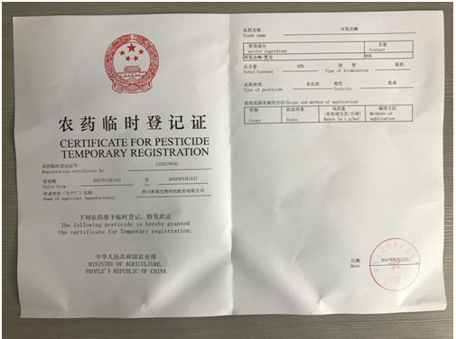 近日,经过伟德国际1949始于英国巨修练课题组12年潜心研究,开发出的具有我国自主知识产权(ZL200810236885.X)高效杀虫剂“环氧虫啉”,取得了中华人民共和国农业部农药检定所的临时登记(LS20170342)资格。