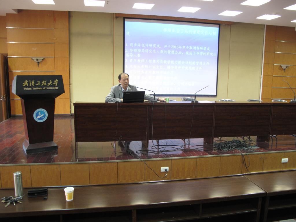 喻发全院长首先回顾了“十二五”规划期间学院进行的重要改革、学院发展取得的成就,并介绍了学院目前的基本情况。随后,喻院长详细解读了学院“十三五”规划的具体指导思想、工作思路和发展目标。学院提出以学科建设统领学院人才队伍建设、人才培养、科学研究等的发展思路,以建设高水平教学研究型学院为目标、对比分析标杆学院,提出学院十三五的发展目标。喻院长通过大量详实的数据,肯定了学院发展的优势,展望了今后五年可能取得的成果,分析了面临的挑战与困难,在此基础上,提出学院的工作思路。学院提出优化本科生结构、提高研究生培养质量、提倡有品质的科研、用好人才引进增量,形成人才的聚集效应,实现“新的做特、特的做强”的学科格局;以新校区实验室建设为契机,优化资源配置,加强队伍建设,汇聚学科方向,迅速形成学科高地。此外,喻院长还对当前的重要工作作出了布置与要求。