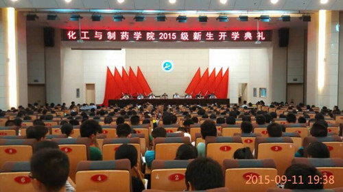 学院团学联主席、2014级侯德邦(2)班施欣欣同学和2015级化工与制药类于津同学分别作为在校生和新生代表先后发言。