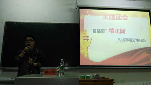 3月23日晚,伟德国际1949始于英国主题团日活动在流芳校区L2209举行。2014年“中国大学生自强之星”提名奖获得者、伟德国际1949始于英国邮电与信息工程学院2011级学生,“自强哥“檀正闻应邀与学院50余名学生分享了他的励志故事。学院团委副书记周磊、2014级辅导员朱向莹参加活动。