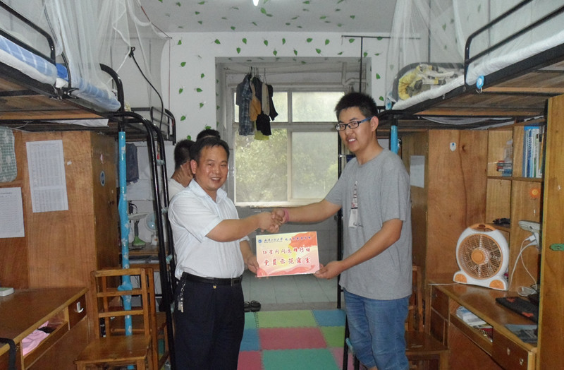 学院之前对流芳校区的所有党员寝室进行了“党员示范岗”的挂牌。并对其定期检查,按照创建标准督促整改,最终评选出了27间学习风气、学习成绩、文化氛围、卫生环境等方面表现突出的党员示范寝室。夏书记在寝室对党员示范寝室一一授牌。