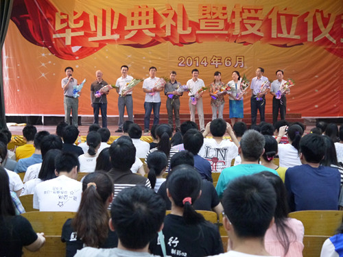 最后,学院五位导师向2014届毕业生进行了学士学位授予仪式,并合影留念,授位仪式庄严肃穆。