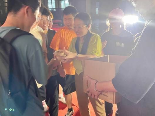 周丹、龙思会代表学院党委,向在场的2023级新生发放中秋月饼,为新生送去暖心的关怀和节日的祝福,希望同学们尽快适应大学生活,以饱满的热情和崭新的精神面貌迎接新学期,启航新征程。