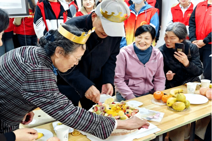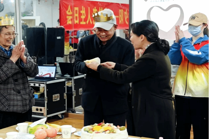 温暖相伴,同庆福寿安康。志愿者们为老人们齐唱《生日快乐歌》、一起吹蜡烛、切生日蛋糕,空气中弥漫着幸福的味道。老人们喜悦之情溢于言表,整个场面热闹而温馨。
