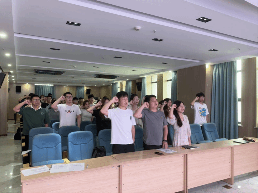 “我志愿加入中国共产党,拥护党的纲领,遵守党的章程……”全体党员高举右拳,庄严宣誓,重温入党誓词,牢记入党初心。