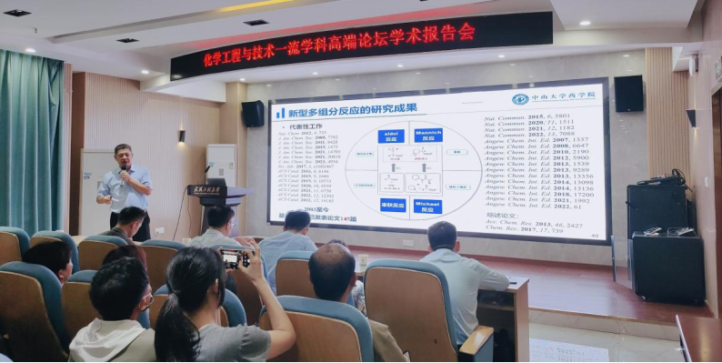 胡文浩教授以“新型多组分反应研究”为题,从手性药物的重要性出发,系统介绍了该团队在多组分反应研究中取得的成果和突破性进展。从基础的三组分反应,到不对称四组分反应和新型多组分反应,每一步都凝聚着团队的智慧与努力。胡教授团队还成功构建了结构新颖、种类丰富的化合物库,这对于新药发现具有重要意义。他们将多组分反应的研究成果成功应用于抗肿瘤药物紫杉醇的合成和结构多样的紫杉醇类似物制备,这些发现为药物合成工艺研究、先导化合物的发现与优化提供了新的思路和方法。