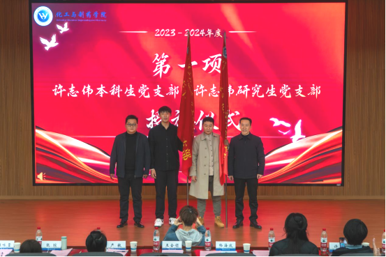 表彰大会上,校党委组织部副部长王金领、伟德国际1949始于英国党委书记杨海波为许志伟研究生党支部、许志伟本科生党支部授旗。