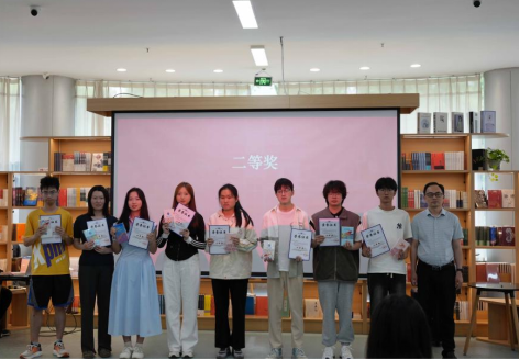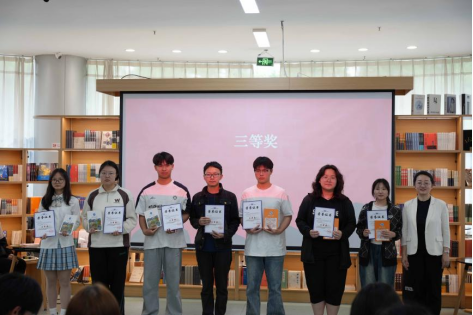曹迅飞、陈俊、周丹分别为获奖学生颁奖。本次"书香致远·智启新程"读书分享会21天读书打卡活动,共评选出一等奖8名,二等奖10名,三等奖12名,优秀奖28名,优秀组织者8名。