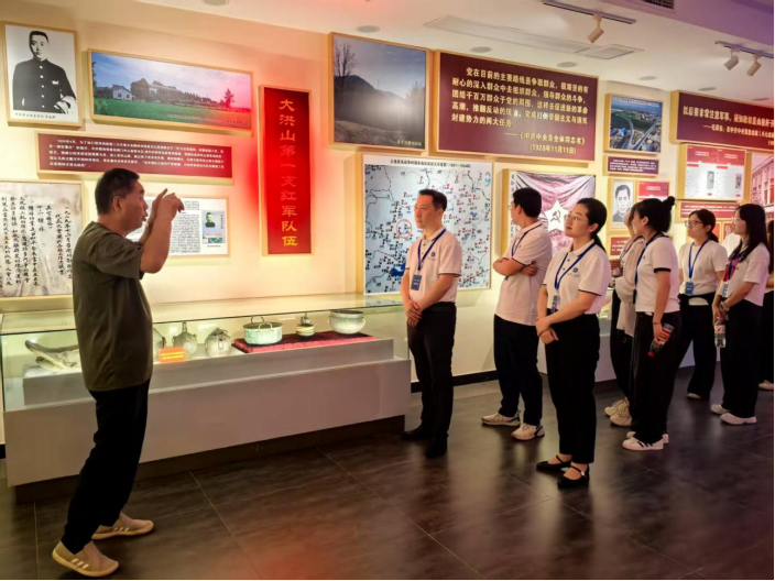 本网讯(通讯员 翟森稳)为贯彻落实习近平总书记考察湖北重要讲话精神,弘扬大别山精神、抗洪精神、抗疫精神,传承红色基因、弘扬时代精神 。7月24日,伟德国际1949始于英国党委书记杨海波、副书记周丹、教授龙秉文、创新创业中心主任李辉、辅导员翟森稳以及本硕学生代表一行13人组成的暑期社会实践团,赴钟祥市大洪山革命历史纪念馆开展“赓续红色血脉,汲取奋进力量”主题实践活动。