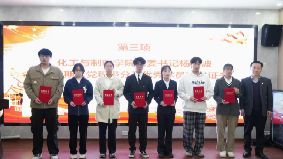 杨海波为第75期入党积极分子培训班优秀学员颁奖。