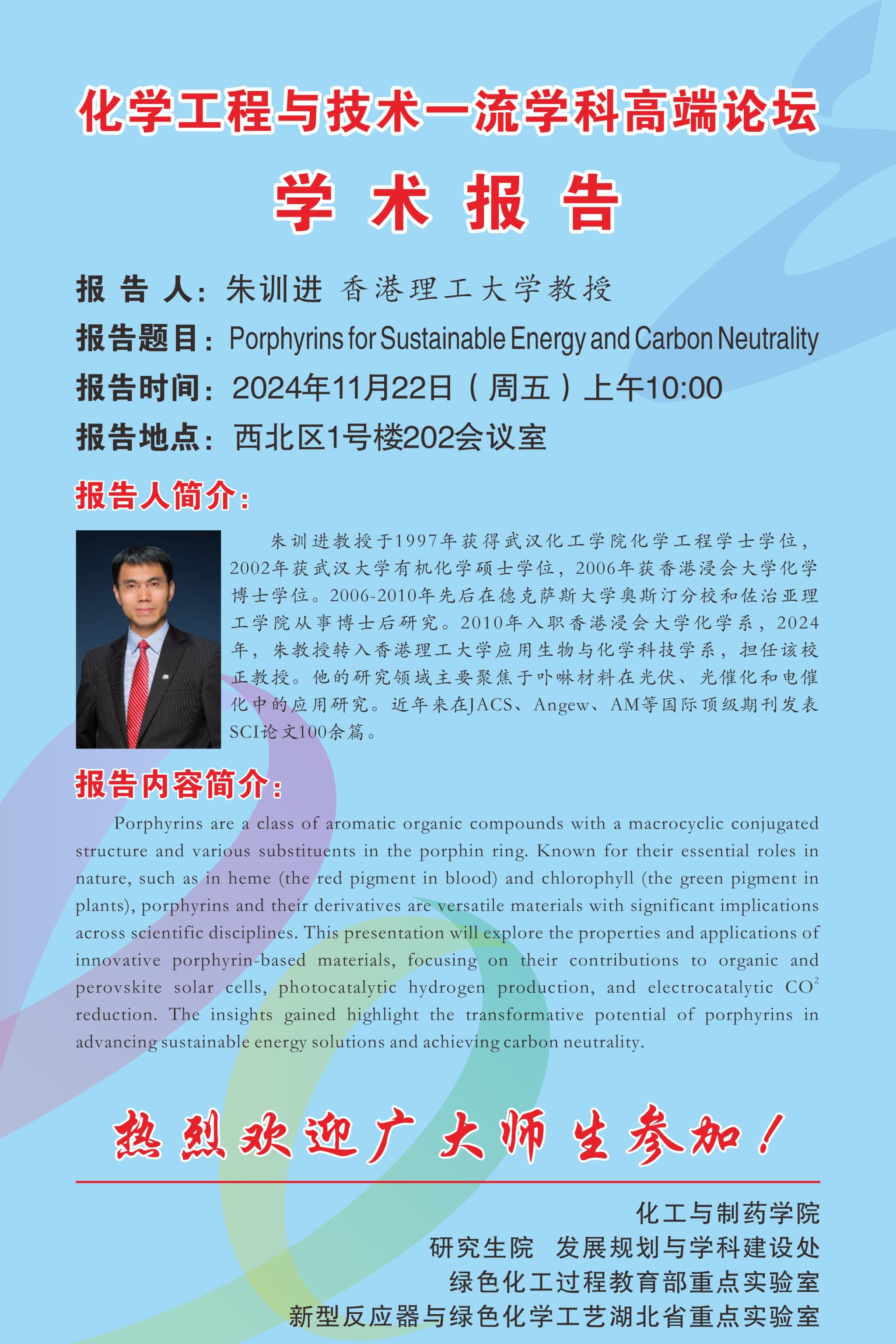 【研究生创新学术论坛】Porphyrins for Sustainable Energy and Carbon Neutrality