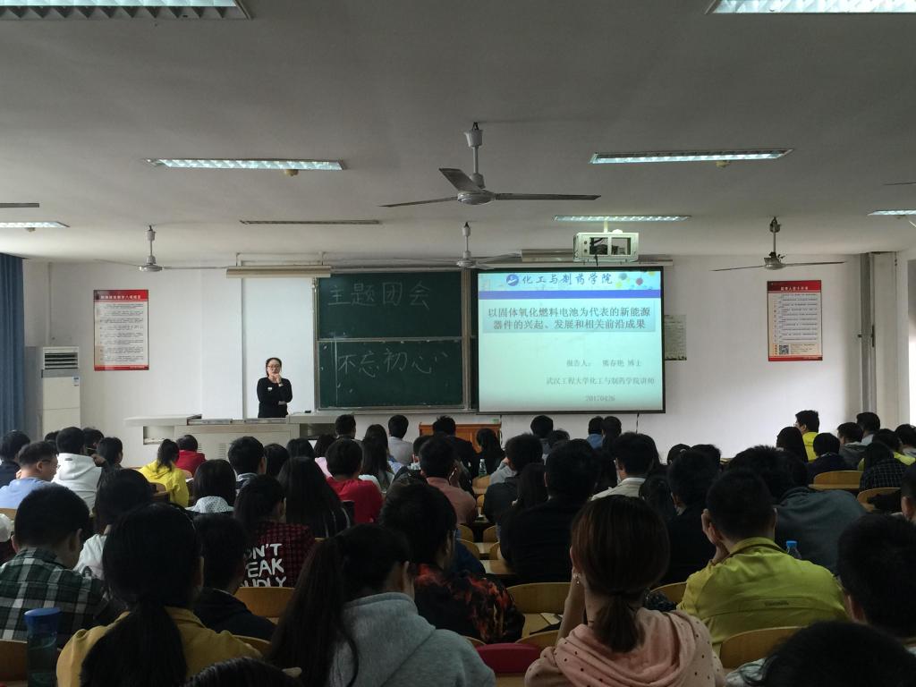 报告会上熊博士针对当前能源紧张和环境污染等问题引出了绿色新能源,着重介绍了燃料电池中的固体氧化物燃料电池,并由浅入深详细地向同学们介绍了固体氧化物燃料电池的结构、阴极的材料、阳极材料、电解质材料、金属连接体的材料。随后,熊博士讲述了固体氧化物燃料电池在技术方面面临的一些问题及它的其他方面的发展。最后,熊博士展示了固体氧化物电池的许多前沿结果和研究展望。