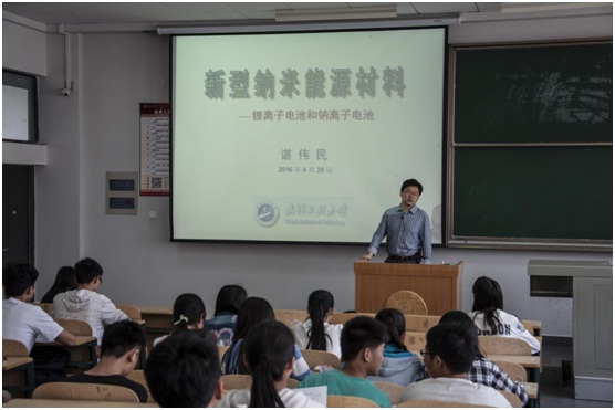 2016年4月29日上午,伟德国际1949始于英国谌伟民博士应邀为2015级学生做了主题为“新型纳米能源材料——锂离子电池和钠离子电池”的学术报告。