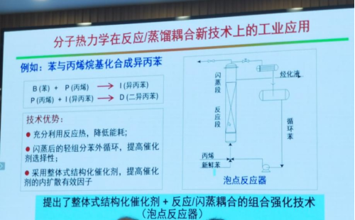 雷志刚教授作了题为《分子热力学理论与实践》的学术报告。他在报告中指出,分子热力学是当前科学研究(包括化工学科)的热点领域,主要从分子尺度上阐述或计算体系的微观或宏观热力学行为,构建分子热力学模型(理论),研究热力学性质对传质/反应动力学的影响规律,实现对化工过程的设计、模拟和强化,从而改善化学工业中存在的高污染、高能耗等三高问题。雷教授系统阐述了所开发的预测型分子热力学模型对实验结果的优良预测效果和对不同研究体系的适用性,分享了将分子热力学的理论成果转化为实际工业应用的经验和实践,如离子液体气体干燥新技术、反应/蒸馏耦合新技术和高纯电子级化学品生产等。