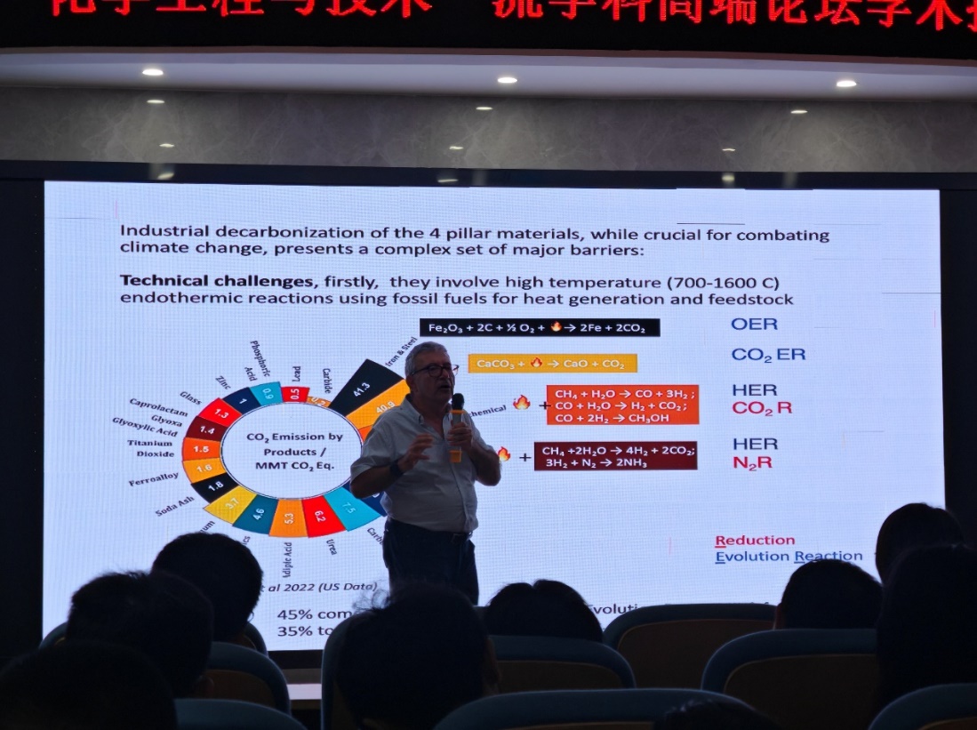 Richard Chahine教授做了题为“Chemical Routes to Decarbonization”的学术报告。报告重点介绍了工业除碳在应对全球气候变化中的重要作用,通过分析碳的来源和去除方法的利弊,得出新兴的电化学工艺可能是将来工业除碳的另一种有效途径,并系统阐述了电化学工艺除碳的原理、方法及面临的挑战。Richard Chahine教授的报告为“双碳战略”提供了新的思路。