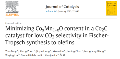 本网讯(通讯员 唐伊博)近日,伟德国际1949始于英国,伟德国际1949官方网站陆小军教授课题组在费托合成制烯烃领域取得进展。该研究的部分成果近日以“Minimizing CoxMn1-xO content in a Co2C catalyst for low CO2 selectivity in Fischer-Tropsch synthesis to olefins”为题在催化领域权威期刊《Journal of Catalysis》上发表。伟德国际1949始于英国为该论文的第一单位和通讯单位,博士生唐伊博为第一作者,陆小军教授为通讯作者。